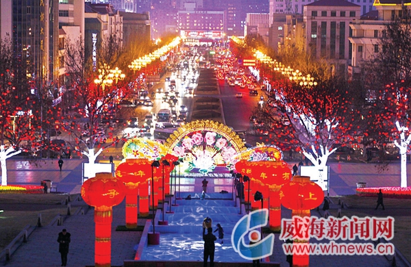 ????“有燈無月不娛人,有月無燈不算春。”春節臨近,夜幕下的威海街道花燈齊放,璨若星河。據了解,近日,我市在環翠樓廣場、人民廣場、幸福門廣場、威海公園中心廣場、悅海公園中心廣場以及東部濱海新城進行立體景觀營造以及燈光裝飾,亮化設計集實用性和美觀性于一體,所選用燈具既保證足夠的照明亮化作用,還注重節能環保,烘托節日氣氛,讓廣大市民過一個祥和幸福年。