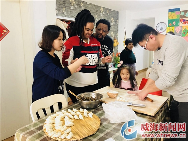 ????為了迎接兩位南非新朋友的到來,梁女士一家提前做好了準備。下午3點過后,莫薩拉夫婦來到梁女士的家里,大家便開始忙著包餃子,梁女士這次為招待莫薩拉夫婦特地準備了具有威海特色的蝦仁肉餡餃子。