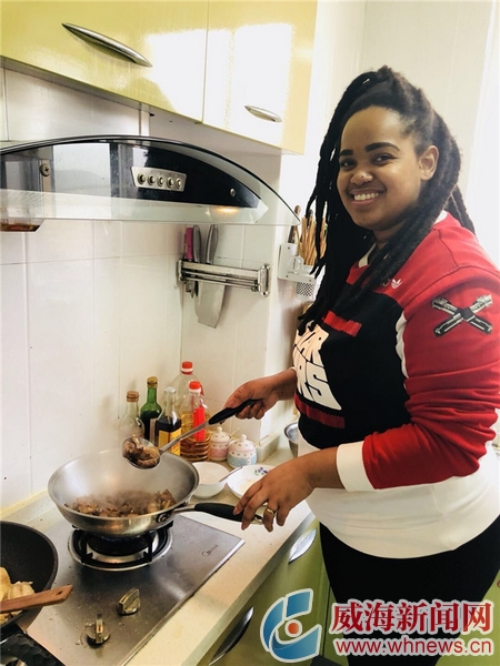 ????莫薩拉的丈夫馬文是一名自由職業藝術家,在妻子來威海工作了一段時間后,他也從南非來到威海與莫薩拉作伴。