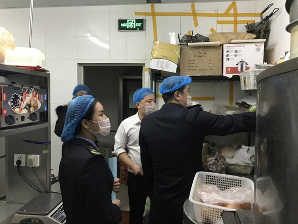 ????隨后,執(zhí)法人員又來到威高美食廣場等餐飲服務(wù)聚集區(qū)進行檢查,隨機抽查了2家餐飲單位,詳細(xì)查看了許可資質(zhì)、索證索票、環(huán)境衛(wèi)生、原料存儲以及加工操作關(guān)鍵點、餐飲具清洗消毒、從業(yè)人員健康狀況等方面,食品安全管理和餐飲操作比較規(guī)范,但存在個別食品無索證索票、食品與非食品混放,執(zhí)法人員責(zé)令餐飲單位立即整改。