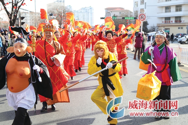 ????“太棒了,以前只能從電視上看到這么熱鬧的場面,今天在威海看到現場版的游藝活動。這才是真正的過大年。”從廈門來威海度假的陳女士第一次看到這么熱鬧的場面,拿著手機,穿著酒店提供的拖鞋就跑了出來,一邊拍,一邊隨著現場的鼓點時不時扭兩下。