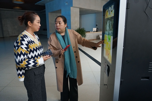 姜海華(右)帶領創業者參觀孵化器公共服務設施。通訊員 曲蕾 攝