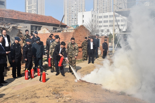 培訓中,消防中隊隊員為參訓人員講解了水槍、水帶、滅火器等設施器材的使用及維護保養。隨后,將如何使用滅火器、原地著裝戰斗服、一人兩盤水帶連接等項目進行了細致的講解。示范結束后,由參訓人員進行實地操作,消防中隊隊員認真指導并糾正操作中出現的不規范之處,切實使每名參訓人員都能夠熟練掌握。
