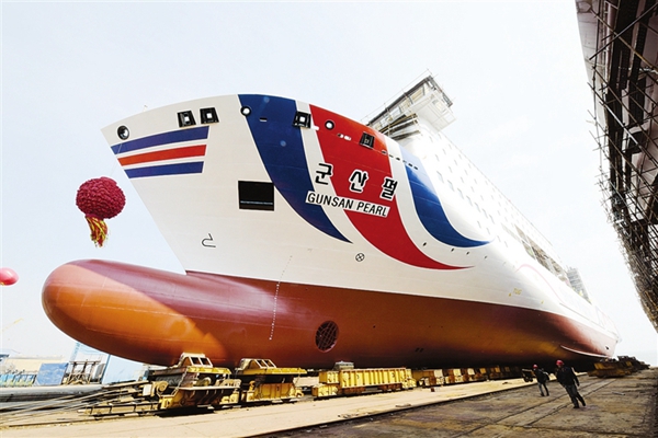 ????3月14日,黃海造船有限公司為石島集團建造的豪華客滾船“群山明珠”順利下水。