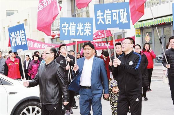 ????崖頭街道北環社區舉行“行走的力量——信用宣傳”活動,通過居民健康行走、橫幅展示、發放宣傳單等形式,宣傳“守信光榮,失信可恥”。