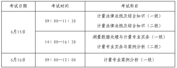 2019年度注冊計量師資格考試具體考試時間如下: