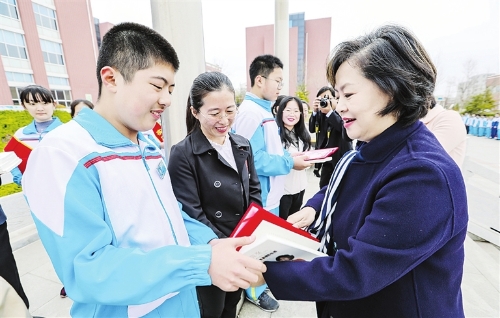 4月22日一早,中央廣播電視總臺著名主持人鞠萍來到市實驗中學,與學校師生一起參加了升國旗儀式及讀書節頒獎活動。“鞠萍姐姐”為15個書香家庭頒獎,鼓勵同學們多讀書、讀好書,從中汲取營養,成就自我。