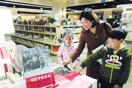 4月20日上午,新華書店里,紅色讀物受到青睞。