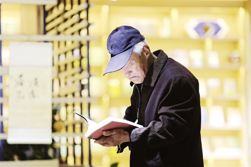 4月20日,新世紀城市書房里,一位老人在津津有味地閱讀。