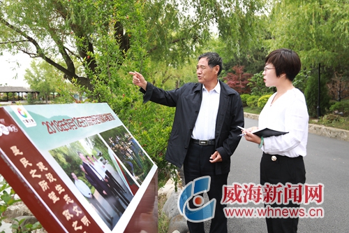 ?華夏文旅集團董事長夏春亭(左)接受威海日報記者采訪。