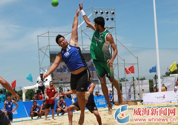 威海新聞網6月17日訊(實習生 賽慧琳 通訊員 王曉根)6月15日,第七屆亞洲沙灘手球錦標賽在南海新區國際沙灘運動基地盛大開幕。來自14個國家和地區的18支沙灘手球隊的近400名運動員齊聚金色沙灘,為居民和游客帶來一場精彩紛呈的國際級沙灘手球競技。這是亞洲沙灘手球錦標賽首次在中國舉辦賽事。