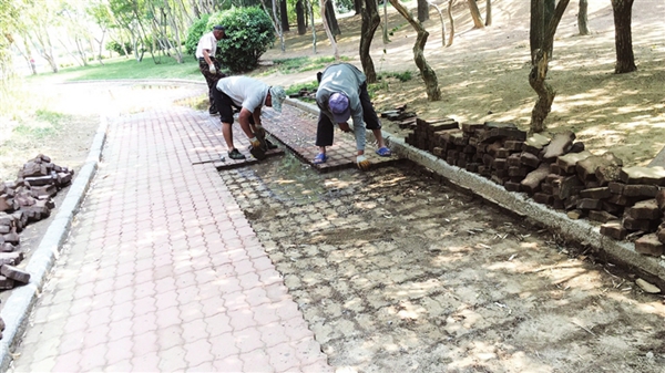 ????連日來,在悅湖路九龍城附近的綠化帶內,園林工人順著市民走出的腳印鋪設道路。在桑干河植物園,施工人員正在對公園內凹凸不平、存在安全隱患的鋪裝小路進行翻新改造。