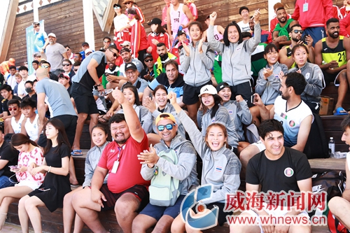 金色沙灘和藍(lán)色大海伴隨著精彩比賽,讓觀眾一飽眼福??磁_上聚集了喜愛沙灘手球的球迷們,他們毫不惜力為選手們送上陣陣喝彩與掌聲?!斑@邊的沙灘很漂亮,每年都會在這舉辦規(guī)模盛大的沙灘比賽,讓我們在家門口就能看到國際賽事,很精彩!”已在南海定居的韓雷雷,為南海新區(qū)的快速發(fā)展感到自豪。而從河南來旅游的沈晨志,親眼目睹了一場精彩激烈的國際體育賽事,他感到十分驚喜:“早就聽說南海新區(qū)氣候宜人,環(huán)境優(yōu)美,精彩活動也多,沒想到剛來這,就能看到這么高規(guī)格的賽事,很開心!”