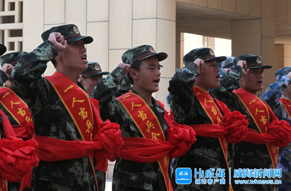 入伍新兵莊嚴(yán)宣誓。 威海晚報(bào)實(shí)習(xí)記者 賽慧琳 攝
