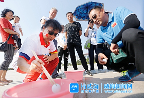 每個(gè)項(xiàng)目的比賽地點(diǎn)都聚集了大量選手和圍觀居民。大家相互鼓勁、你追我趕,加油聲、鼓勁聲和吶喊聲一浪高過(guò)一浪,在多姿多彩的體育活動(dòng)中感受運(yùn)動(dòng)的樂(lè)趣,歡度國(guó)慶佳節(jié)。在40米釣魚跑比賽現(xiàn)場(chǎng),發(fā)令槍剛響,選手們便拿著“魚鉤”沖向一個(gè)特制的礦泉水瓶,小心翼翼地將“魚鉤”勾住水瓶,看似簡(jiǎn)單的項(xiàng)目操作起來(lái)卻很困難,急得參賽選手們直冒汗。而現(xiàn)場(chǎng)從濟(jì)南來(lái)南海新區(qū)定居的王麗萍很有經(jīng)驗(yàn),手持釣竿釣礦泉水瓶可謂“穩(wěn)、準(zhǔn)、狠”,最終勇奪40米釣魚跑比賽冠軍。“這是我連續(xù)第四年參加趣味運(yùn)動(dòng)會(huì)了,每年國(guó)慶節(jié)都在南海新區(qū)過(guò),每次運(yùn)動(dòng)會(huì)我都報(bào)這個(gè)項(xiàng)目,這里不僅環(huán)境優(yōu)美,活動(dòng)更是豐富多彩。”王麗萍說(shuō)。