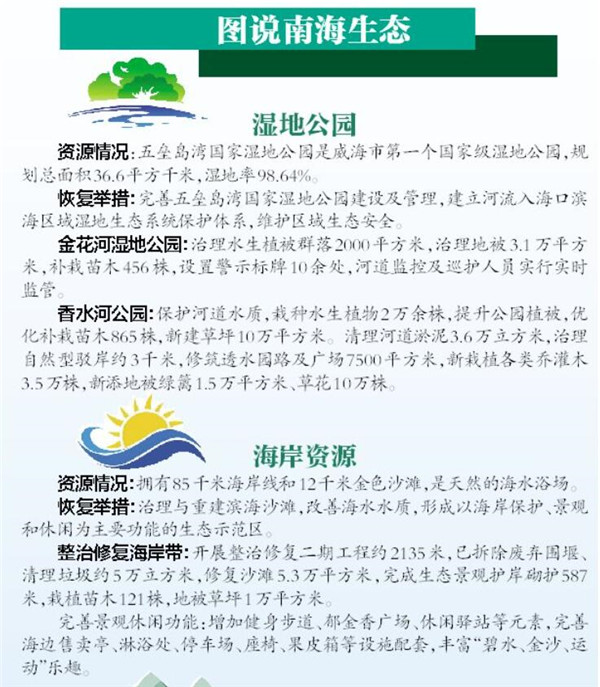 綠水青山就是金山銀山。近年來,憑借著生態修復取得的良好成效,南海新區不斷把生態優勢轉化成發展優勢,這個藍色經濟新動能聚集區正在譜寫綠色生態發展的新篇章。(來源:威海晚報)