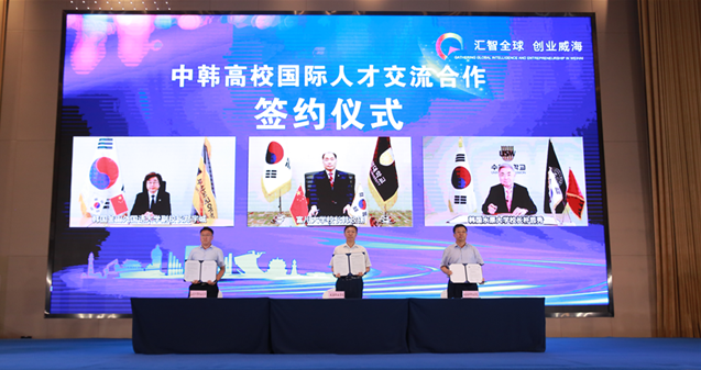 威海與韓國地緣相近、人緣相親、產業相融,為了推動中韓高校合作,聯合培養國際化人才,經前期溝通,威海市人社局和威海市外辦促成山東外事職業大學與釜山外國語大學、威海職業學院與富川大學、威海海洋職業學院與水原大學就聯合培養高端人才、引進在韓留學青年博士和創新創業團隊、共同開展產學研合作方面達成共識。活動現場,這六所高校采用視頻連線的方式簽訂了合作協議。