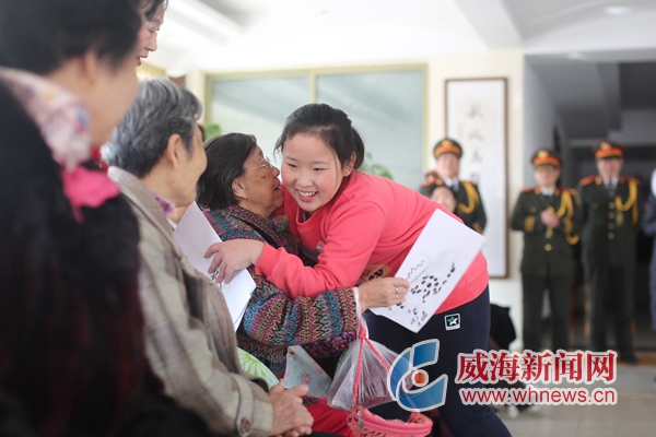 ??????實驗小學的陳佳玉是當天來做志愿服務中最小的志愿者,才12歲。她為爺爺奶奶們進行了一段精彩的非洲鼓表演。得知要給爺爺奶奶送演出,她還提前在家畫了20多幅畫,送給老人們留作紀念。住在老年公寓的郭樹新老人對小佳玉和她的畫喜歡得不得了,還親昵地捧著她的小臉親了親。