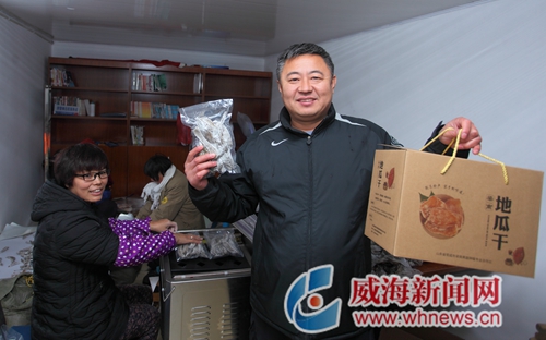 威海新聞網1月16日訊 (記者 姜慧芳)前些日子,室外雪花紛飛、寒風凜冽,榮成市埠柳鎮梁南村村委大院西側屋子里卻暖意融融。幾個村民正在忙著把剛剛曬好的地瓜干包裝起來,禮盒上“梁南地瓜干”的標識格外醒目。大家圍坐在一起,手里忙個不停,滿臉笑意。