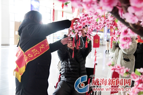冒著熱氣的姜湯,滿是關懷與愛心的輪椅,掛滿新年憧憬與心愿的桃花樹……當日,從威海站廣場走入候車大廳,一眼見到的便是威海交通場站有限公司為春運而增設的志愿服務崗。這里熱水、姜湯、輪椅、行李車等便民服務設施一應俱全,為旅客提供安全勸導、秩序維護、咨詢指引等服務。