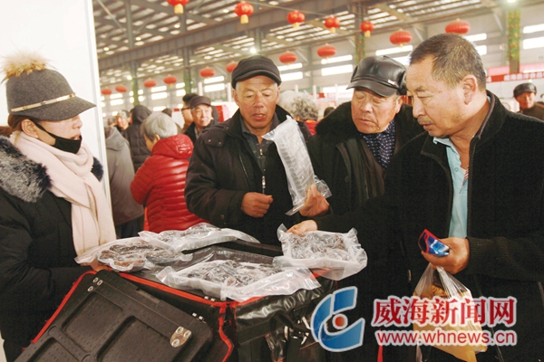 ????來自煙臺茂壽商貿有限公司的負責人告訴記者,為了這次年貨節,他們現場調來充足、新鮮的海產品供大家選購,上午賣得較好的當數扇貝、刀魚和大蝦了。此外,威海當地的海產也以個大新鮮,成為消費者新春走親訪友的首選佳品。
