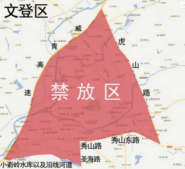 ????2、文登區(qū)的威青高速公路以南、以東,虎山路以西,小崳嶺水庫以及沿線河道、圣海路、秀山路、秀山東路連線以北的區(qū)域;