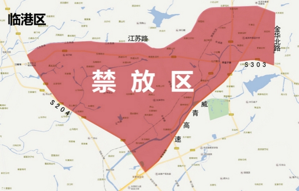 ????3、臨港區(qū)的204省道以東,江蘇路以南,金華北路以西,303省道、威青高速公路連線以北的區(qū)域;