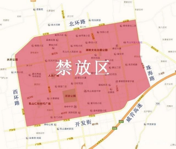 ????5、乳山市區(qū)西外環(huán)路以東,北外環(huán)路以南,長慶路、珠海路至威青 高速交接處以西,開發(fā)街、日照路以北區(qū)域為禁止燃放煙花爆竹區(qū)域。