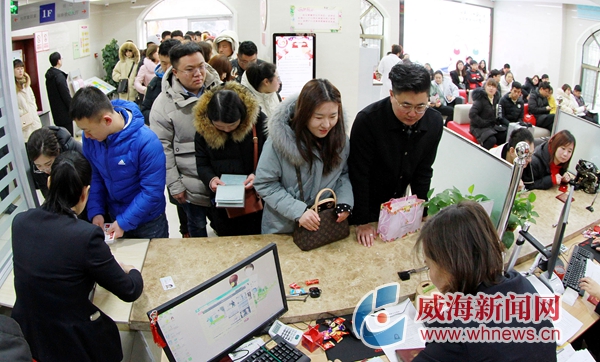 每年情人節,都是情侶們扎堆登記的日子。據統計,截至昨日下午4點半,全市共有675對情侶登記結婚。其中,環翠區婚姻登記處有162對,文登區有176對,臨港區有23對,乳山市有125對,榮成市有189對。