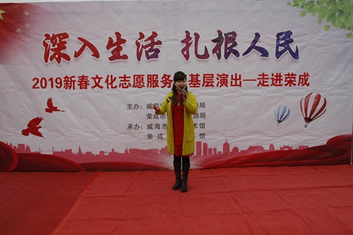 2月18日上午,夏靜跟隨由威海市文化和旅游局、榮成市文化和旅游局主辦,威海市群眾藝術(shù)館、榮成市文化館承辦的“深入生活 扎根人民”2019新春文化志愿服務(wù)下基層演出,走進(jìn)榮成,在崖頭大集上演出。
