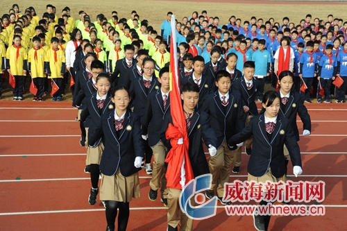 望海園中學開展“激情傳遞 以行諾言 萬米追夢 攜手成長”開學典禮主題活動。威海晚報記者 王曉 攝