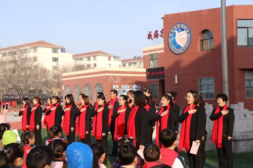 教師們莊嚴宣誓:文化引領,管理立身,伴你播種理想!人文奠基,科技振翅,助你匯聚能量!涵養正氣,開闊格局,做有使命的中國人!鏗鏘的誓言表達了一小教師文化育人的愛心和決心。