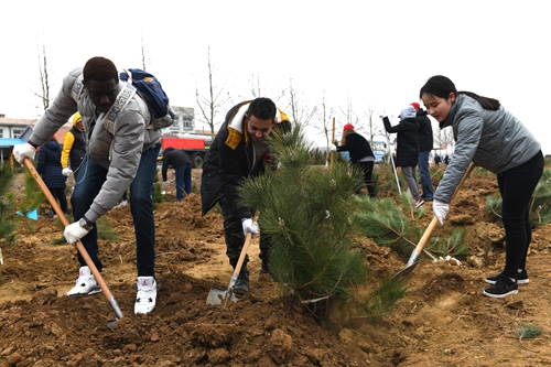 來自俄羅斯、巴勒斯坦、蒙古、幾內亞、塞內加爾、中非、坦桑尼亞等國家的20多名留學生也加入志愿者隊伍。第一次參加植樹活動的中非留學生何星辰非常興奮地說:“這里的生態環境很好,希望通過我們的努力,能讓這里變得更加美好。”來自俄羅斯的留學生伊琳娜也是第一次參加植樹活動:“這次栽的松樹,我的家鄉也有,很熟悉。”
