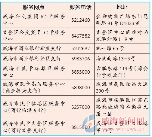3、威海市民卡加載公交集團優惠或免費乘車功能服務網點