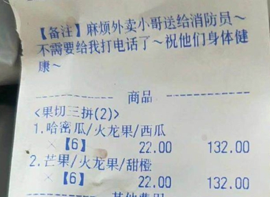 外賣單備注區(qū)里的話語(yǔ)令人動(dòng)容