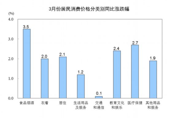 統計局:3月份全國居民消費價格同比上漲2.3%