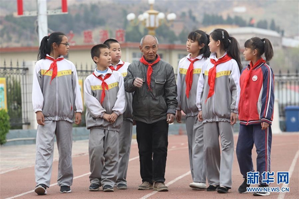 這是4月8日,閆青海在給孩子們講奮斗創業的故事。新華社發(梁子棟 攝)