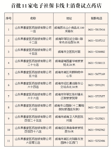 ????昨日,記者從威海市人力資源和社會保障局、威海市醫(yī)療保障局獲悉,作為全國電子社保卡試點城市,威海電子社保卡已于日前正式上線運行,參保人員可通過3種渠道申領(lǐng)。目前全市已確定11家電子社保卡線上消費試點藥店,參保人員在這11家試點藥店購藥可直接出示手機(jī)進(jìn)行掃碼消費啦!