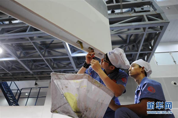 工作人員對火箭進(jìn)行總裝(2016年10月27日攝)。新華社發(fā)(中國航天科技集團(tuán)供圖)