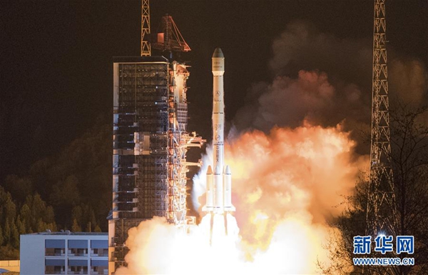 長征三號乙運(yùn)載火箭以“一箭雙星”的方式成功發(fā)射第二十八、二十九顆北斗導(dǎo)航衛(wèi)星(2018年2月12日攝)。新華社發(fā)(中國航天科技集團(tuán)供圖)