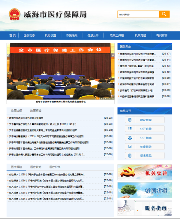 5月24日,威海市醫療保障局官網與微信公眾服務平臺正式上線,官網網址:http://ylbzj.weihai.gov.cn/index.html,微信公眾服務平臺:威海醫保局。