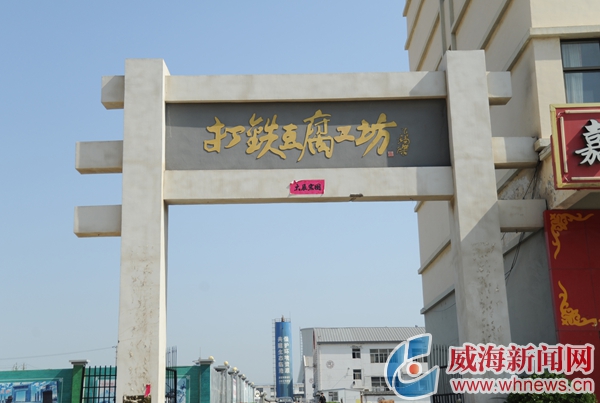 在臨港區202省道和浙江路交叉口東側不遠處,有一個頗為氣派的牌坊,正反面分別寫有“打鐵豆腐工坊”和“玉味重光”的字樣。這里便是有著600余年歷史的“打鐵豆腐”主要生產地。在這漫長的歷史歲月中,打鐵豆腐一直是威海人餐桌上非常重要的食品,伴隨著一代又一代威海人的成長。