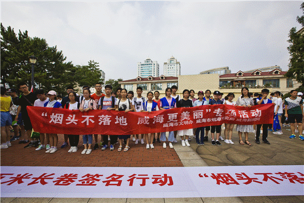 2018年6月4日“煙頭不落地,威海更美麗”專項活動正式啟動,由威海市文明辦、威海團市委、威海市愛衛辦主辦,威海市煙草專賣局承辦,威海市城管執法局、威海市住房城鄉建設局、威海市消防支隊等部門共同參與。活動目的是讓吸煙行為更加規范,文明禮儀深入人心,為鞏固文明威海建設成果作出貢獻。