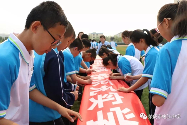最后,全體學生分年級進行了宣誓,并在倡議橫幅上鄭重簽下了自己的名字。