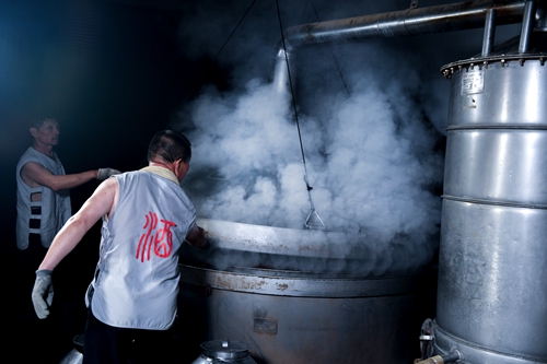 據介紹,文登學酒生產所用原料必須是優質的“五糧”——高梁、玉米、小麥、大米、糯米,要求顆料均勻飽滿、新鮮、無異雜味。釀酒生產過程所需用水完全采用昆崳山優質礦泉水。在選料、生產用水、制曲過程、入窖固態發酵、蒸餾、貯藏、灌裝等每一道程序上,都是嚴格把關,精益求精。