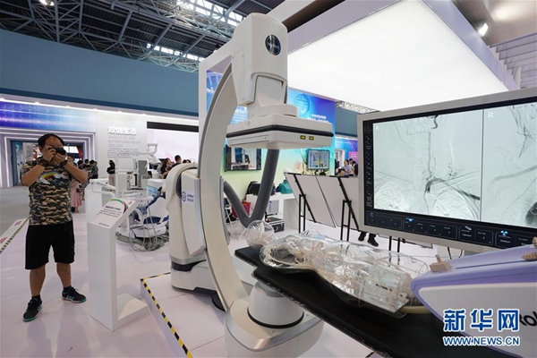 6月13日,參觀者在參觀展出的高精度微創(chuàng)血管介入手術(shù)機(jī)器人。 當(dāng)日,全國大眾創(chuàng)業(yè)萬眾創(chuàng)新活動(dòng)周——北京會(huì)場主題展在中關(guān)村國家自主創(chuàng)新示范區(qū)展示中心開幕,參展企業(yè)300余家,項(xiàng)目300余項(xiàng),各類科技服務(wù)機(jī)構(gòu)130余家。本次展覽以“匯聚雙創(chuàng)活力,澎湃發(fā)展動(dòng)力”為主題,以服務(wù)創(chuàng)新創(chuàng)業(yè)者為主線,分為創(chuàng)新引領(lǐng)、創(chuàng)新要素、創(chuàng)新源頭、雙創(chuàng)生態(tài)、京津冀協(xié)同創(chuàng)新、開放融合、科技惠民七大展區(qū),彰顯科技創(chuàng)新對(duì)經(jīng)濟(jì)社會(huì)發(fā)展和民生改善的支撐引領(lǐng)作用。 新華社記者 鞠煥宗 攝