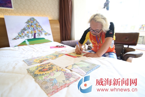 一個(gè)個(gè)文藝作品各放異彩,一項(xiàng)項(xiàng)傳統(tǒng)藝術(shù)重?zé)ㄉ鷻C(jī)……這場藝術(shù)節(jié),不僅堪稱文創(chuàng)盛宴,更成為各國藝術(shù)家互相交流的優(yōu)質(zhì)平臺(tái)。韓國著名木槿花畫家金終姬房間內(nèi),各種形態(tài)的木槿花在她筆下更顯生動(dòng)。“木槿花是韓國的國花,今天我和很多中國畫家交流了畫法,希望讓更多朋友了解韓國文化?!苯鸾K姬說,一年前她來伴月灣藝術(shù)家駐地參展,威海清新的空氣和美麗的風(fēng)景給她留下了深刻印象,她因此涉足海洋油畫創(chuàng)作,本次帶來了5幅海洋油畫作品,希望在威進(jìn)行進(jìn)一步創(chuàng)作。