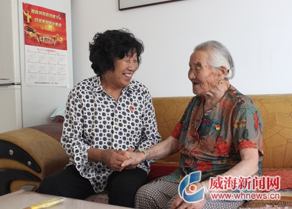 張錫芝(左)看望老黨員鞠維貞。 記者 姜慧芳 攝