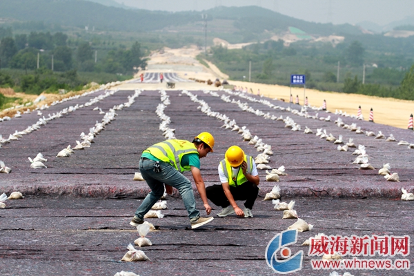 7月5日上午10時(shí)許,在湖南路橋建設(shè)集團(tuán)承建的文萊高速路面十四合同段,施工人員正在進(jìn)行路面試驗(yàn)路段養(yǎng)護(hù)。據(jù)了解,試驗(yàn)路段是路面正式施工之前必須經(jīng)歷的步驟,試驗(yàn)路段路面由底基層、基層、瀝青三層組成,文萊高速威海段目前共設(shè)置了3處試驗(yàn)路段。
