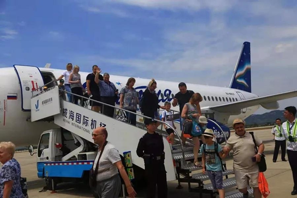 7月9日,俄羅斯布拉戈維申斯克(簡稱“布市”)至中國威海的入境國際旅游包機成功首航,拉開我市今年俄羅斯大團隊入境游的序幕。這是山東省今年迎來的首個俄羅斯入境旅游包機,威海已連續兩年成功開通俄羅斯入境旅游包機。首發團的百位俄羅斯游客將在威海開啟為期15天的濱海休閑度假之旅。